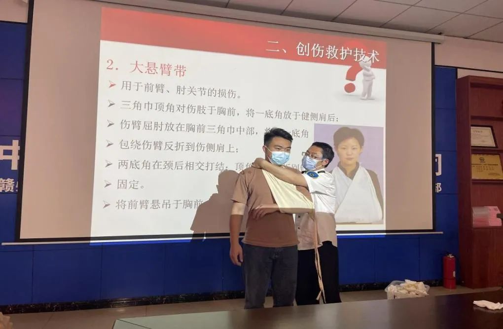 在應(yīng)急救護(hù)知識(shí)培訓(xùn)階段,贛州市急救中心醫(yī)務(wù)人員對(duì)應(yīng)急救護(hù)知識(shí)進(jìn)行現(xiàn)場授課,重點(diǎn)對(duì)止血包扎、海姆立克急救法進(jìn)行實(shí)操演練,大家現(xiàn)場學(xué)習(xí)了如何利用生活中隨處可見的物品對(duì)較小創(chuàng)傷進(jìn)行自救的方法。