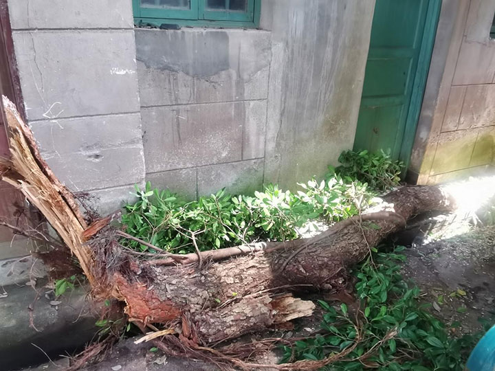 今年5月,我市大部分地區(qū)交替出現(xiàn)大風(fēng)、雷雨、暴雨等天氣,降雨量大且持續(xù)時(shí)間長。5月18日,一場雷雨過后,贛州市機(jī)關(guān)事務(wù)管理中心轄區(qū)老市委大院內(nèi),一顆200多年的古榕樹樹枝斷裂,懸掛于院內(nèi)一屋頂之上。院內(nèi)居民憂心忡忡,擔(dān)心這顆“定時(shí)炸彈”,隨時(shí)都可能掉下,砸毀房屋,危及院內(nèi)居民的人身安全。