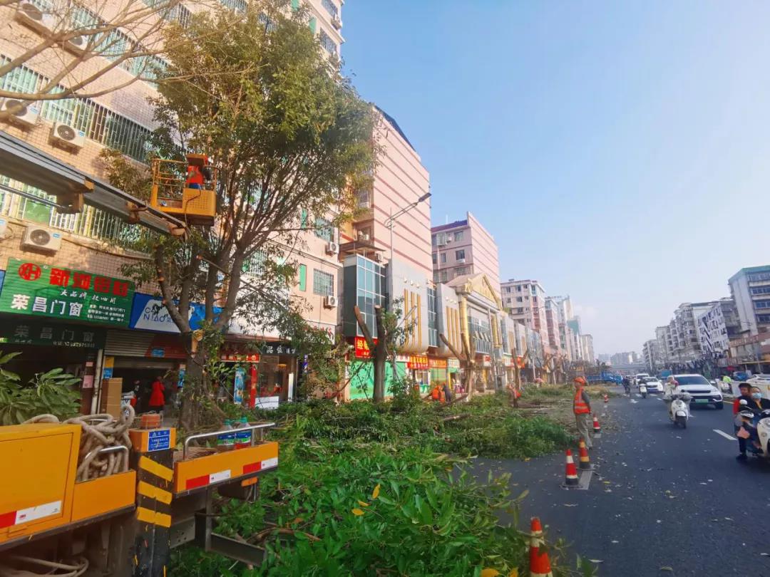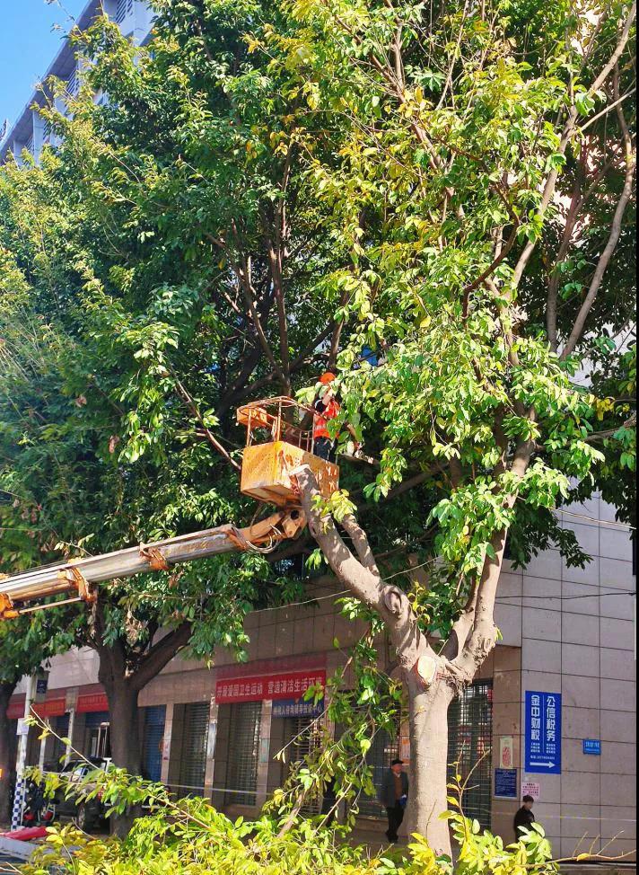 生態(tài)環(huán)境公司將對(duì)站北社區(qū)、文明大道、寧都路、楊公路等13個(gè)路段及街道約2000多株行道樹(shù)進(jìn)行了修剪。行道樹(shù)主要品種為大葉榕、小葉榕,高度均在10-40米之間,有接近100棵為40米高度,整體作業(yè)難度增加,截止目前為此,已修剪200多棵,預(yù)計(jì)整個(gè)修剪工作要持續(xù)到6月中旬。