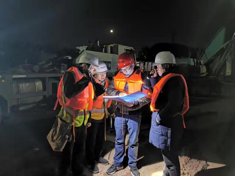 在蟠龍大橋項(xiàng)目施工現(xiàn)場(chǎng),工程管理公司工作人員組織參建人員推進(jìn)水上樁基以及圍堰施工堅(jiān)固等施工作業(yè)。