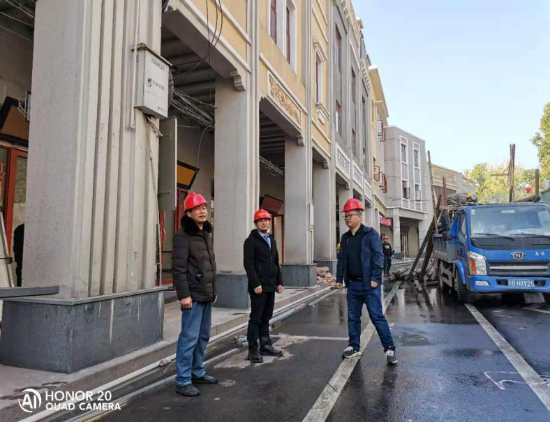 在贛南特色文化一條街項(xiàng)目現(xiàn)場(chǎng),土地置業(yè)公司工作人員組織參建人員有序開展房屋加固修繕等工作。