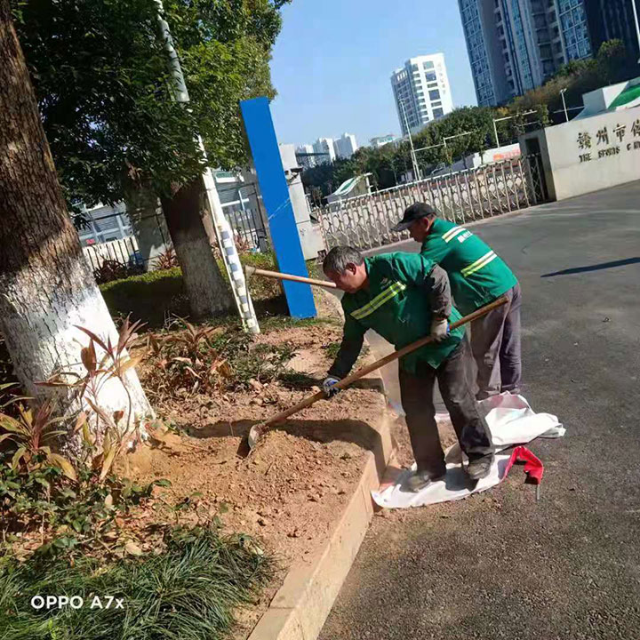 在贛州中心城區(qū)各公園、廣場(chǎng)、道路等地,生態(tài)投資公司組織生態(tài)環(huán)境公司的管養(yǎng)人員開展落葉清掃、樹木栽植、花草樹木澆灌等工作。