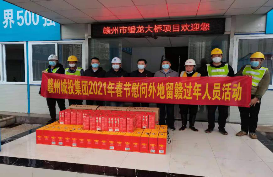 2月9日,贛州城投集團(tuán)開展2021年春節(jié)慰問市域外留贛州過年人員活動(dòng),為留在贛州過年的市域外集團(tuán)員工及項(xiàng)目工人送上年貨禮包,讓他們就地過好溫馨春節(jié)。