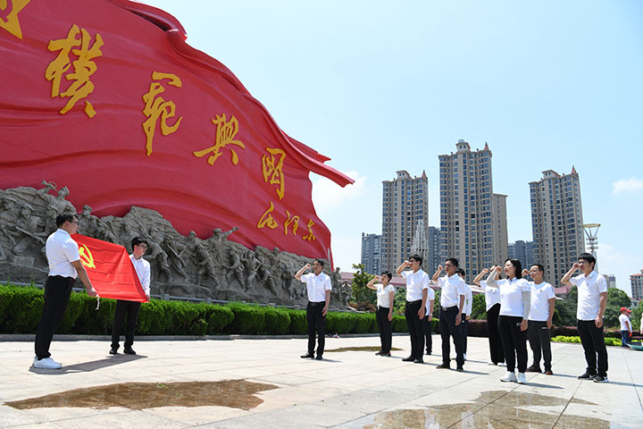 在將軍園三面軍旗及69位革命先烈沖鋒陷陣的大型群雕前,大家重溫入黨誓詞,鏗鏘誓言在將軍廣場回蕩,黨員們對自身的擔當和使命都有了更加深刻的領(lǐng)悟。