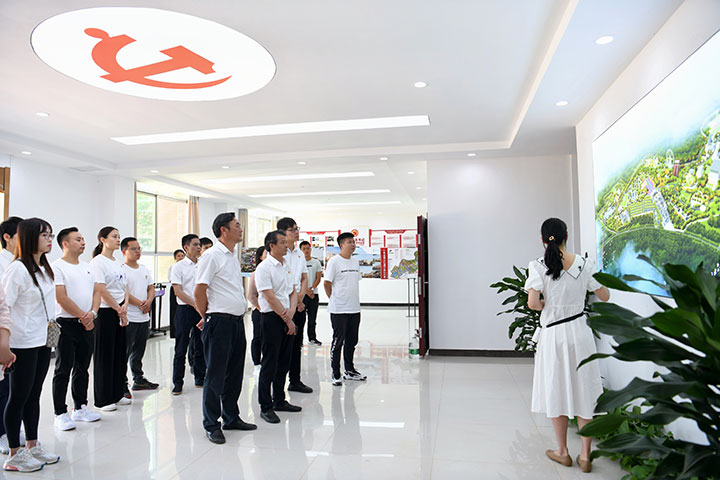 在江西贛州景行研學營地,大家參觀了園區(qū)內(nèi)即將裝修完工的旅順號護衛(wèi)艦及軍工智慧館,通過講解員生動的講解、現(xiàn)場逼真的模型、聲光電特效等方式,大家對我國載人航天、核彈研發(fā)、深海載人潛艇等海陸空軍事技術(shù)有了全新認知。參觀結(jié)束后,雙方黨員還開展了交流學習,共同謀劃業(yè)務(wù)推進舉措。