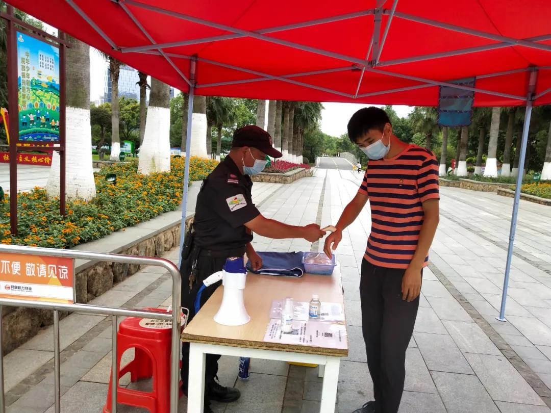 生態(tài)投資公司強化公園防疫管控措施。對公園內(nèi)作業(yè)人員(綠化、保安、保潔)每天上班進行戴口罩掃碼測溫,確保園內(nèi)工作人員健康作業(yè)。對半封閉公園主要出入口設置保安崗,嚴格落實入園游客必須戴口罩、掃碼測溫。園內(nèi)專門設置巡邏崗,常態(tài)化加強公園巡邏,及時勸導跳廣場舞、唱歌等聚集性人群。同時加強對公園設施設備的消殺工作,對公園內(nèi)的垃圾桶、亭廊、果殼箱、管理用房每天進行兩次消殺工作,確保防控措施落實到位。