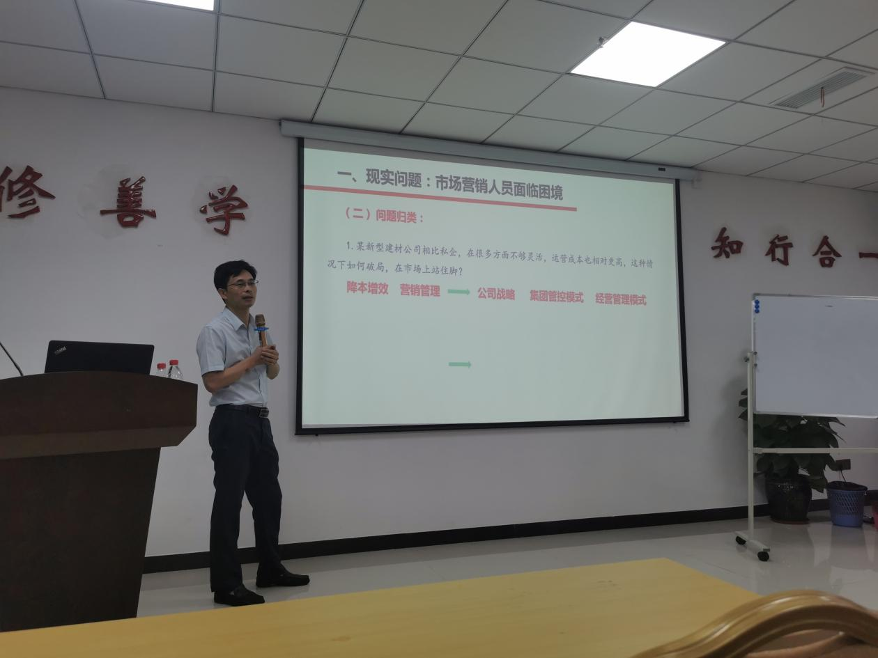 在培訓(xùn)會上,鄒國良教授闡述了市場營銷人員面臨的困境、全面梳理了目前公司發(fā)展可能存在的問題,從業(yè)績持續(xù)改善及市場營銷方面作為突破口,提出了破解問題的工作方法及應(yīng)用。課堂上,為活躍學(xué)習(xí)氣氛,鄒國良教授與學(xué)員進(jìn)行互動(dòng)探討,并對提出的問題進(jìn)行了細(xì)致解答。