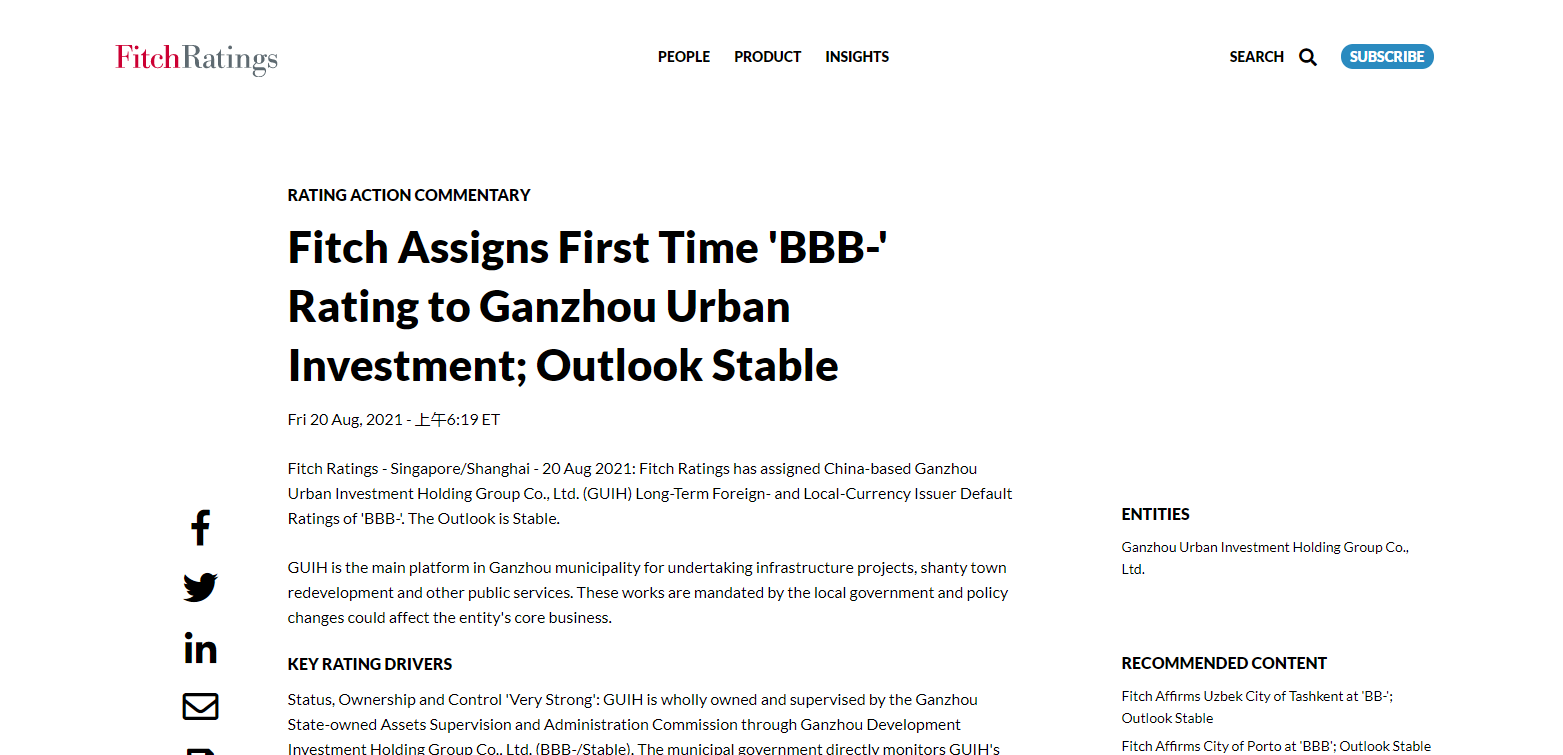 贛州城投集團(tuán)首次國際信用評級喜獲BBB-