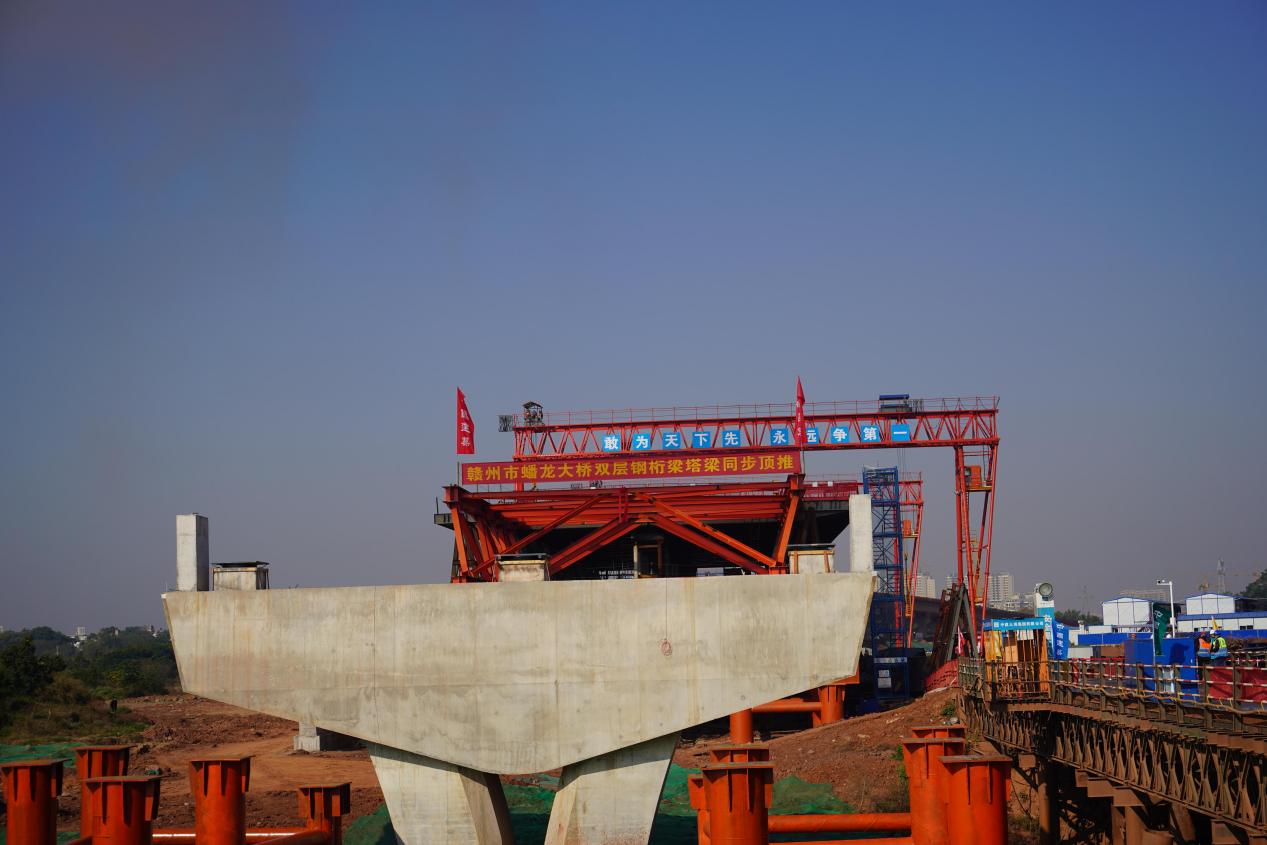 【百日攻堅戰(zhàn)報】贛州市蟠龍大橋項目:主橋鋼桁梁啟動首次頂推,有項工藝屬江西省首次使用