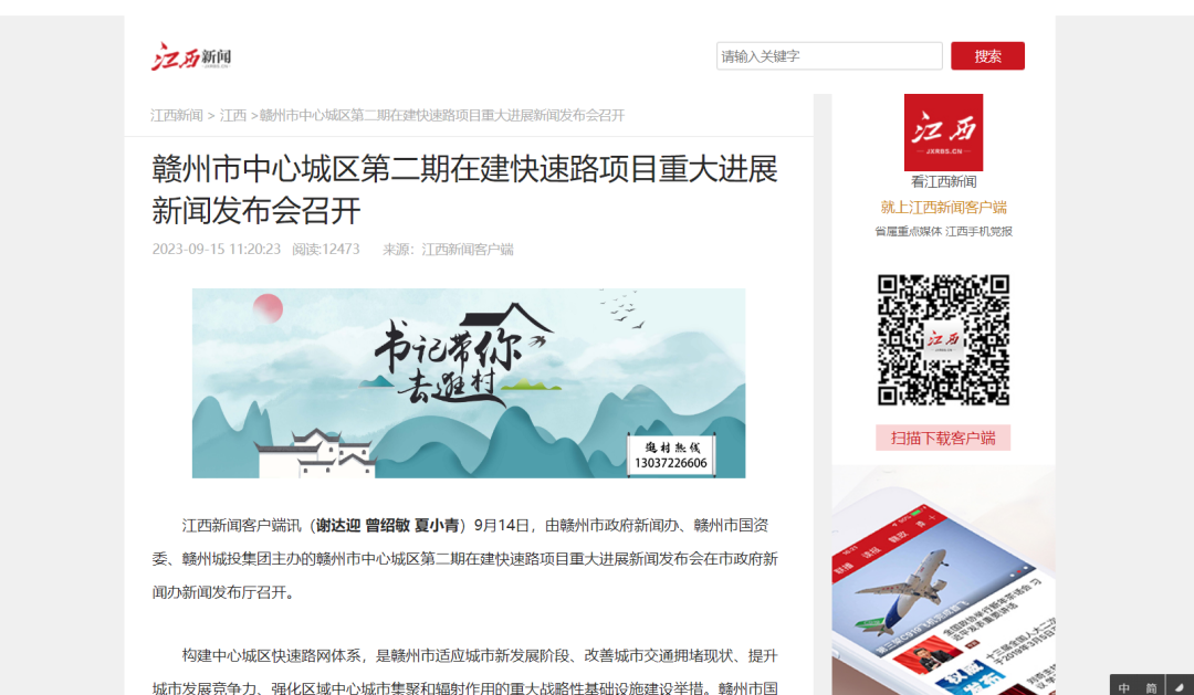 近日,市政府新聞辦、市國資委、贛州城投集團聯(lián)合召開贛州市中心城區(qū)第二期在建快速路項目重大進展新聞發(fā)布會,介紹了黃金大道、贛南大道四標(biāo)等一批快速路的最新進展情況,江西新聞客戶端、大江網(wǎng)、今視頻、江南都市報、鳳凰新聞、贛南日報、贛州廣播電視臺等多家媒體紛紛聚焦報道贛州市6條在建快速路項目建設(shè)最新成效進展。