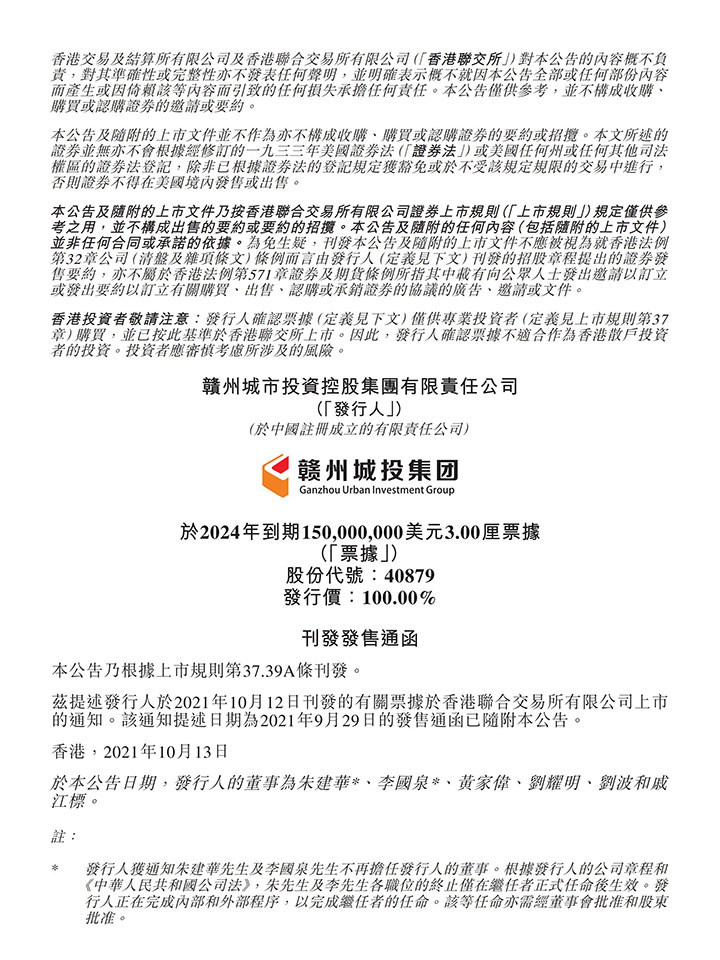 贛州城投集團(tuán)境外債券刊發(fā)發(fā)行通函公告