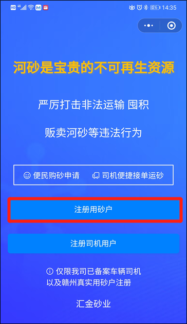 3.選擇“注冊用砂戶”