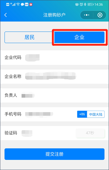 4. 選擇 “企業(yè)”注冊,并填寫相關(guān)信息。(企業(yè)代碼由贛州匯金砂業(yè)有限公司提供)