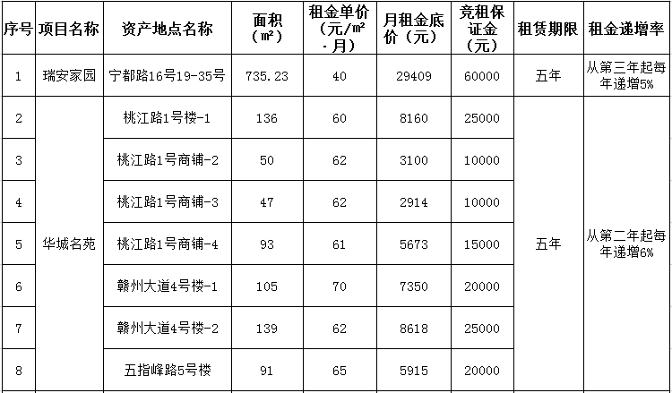 關(guān)于贛州振興實(shí)業(yè)有限責(zé)任公司8宗商鋪資產(chǎn)(項(xiàng)目編號:GZCQ202068)公開招租的公告