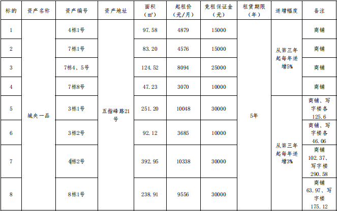 二、招租標(biāo)的、起租價及競租保證金