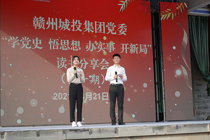 贛州城投集團(tuán)讀書分享會(huì)自從2014年10月創(chuàng)辦以來,已經(jīng)打造成為集團(tuán)的知名品牌活動(dòng)。根據(jù)集團(tuán)黨史學(xué)習(xí)教育部署,在第26個(gè)“世界讀書日”來臨之際,4月21日下午,贛州城投集團(tuán)黨委2021年“學(xué)黨史 悟思想 辦實(shí)事 開新局”讀書分享會(huì)第一期在郁孤臺(tái)文化街區(qū)順利舉辦,本次分享會(huì)由集團(tuán)機(jī)關(guān)一支部、機(jī)關(guān)二支部、土地置業(yè)公司黨支部聯(lián)合承辦。集團(tuán)黨委副書記黃家偉出席,各黨支部書記、部分黨員代表參加本次活動(dòng)。