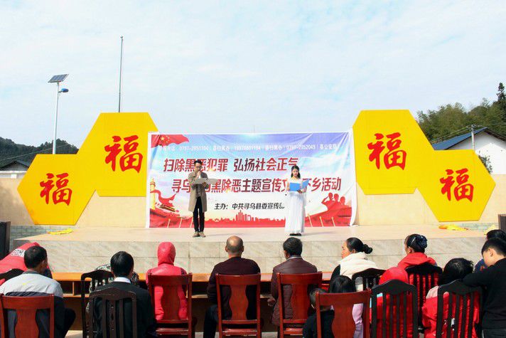 為持續(xù)推進掃黑除惡專項斗爭工作,營造全民知曉、全民參與的掃黑除惡濃厚氛圍,不斷提升群眾知曉率和滿意度,江西省尋烏縣創(chuàng)新宣傳形式,組織以“掃除黑惡勢力,弘揚社會正氣”為主題的送戲下鄉(xiāng)巡回演出,通過群眾喜聞樂見的方式,將掃黑除惡專項斗爭“演”進群眾心里。